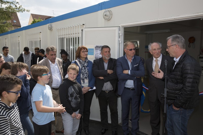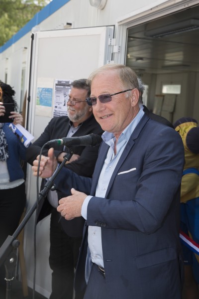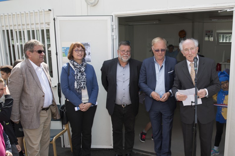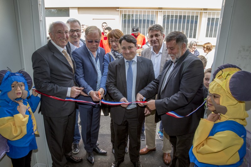 Le couper de ruban à l'entrée du clubhouse