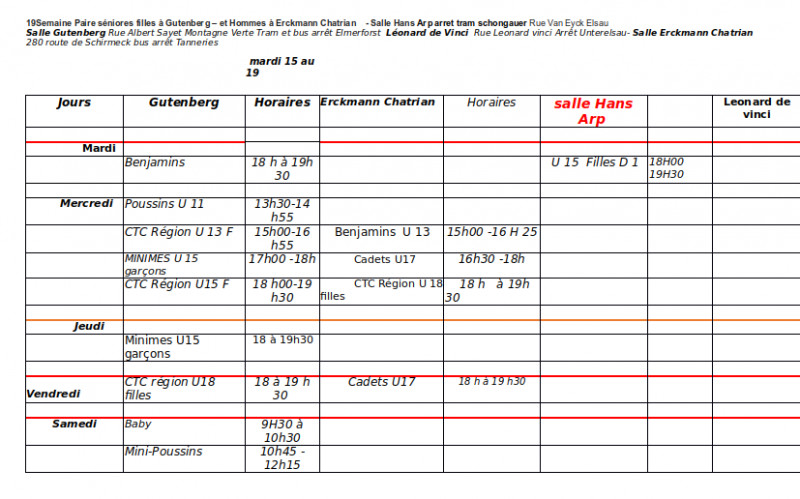 L'affichage des tableaux d'entrainement sera fait le mardi 8 décembre.